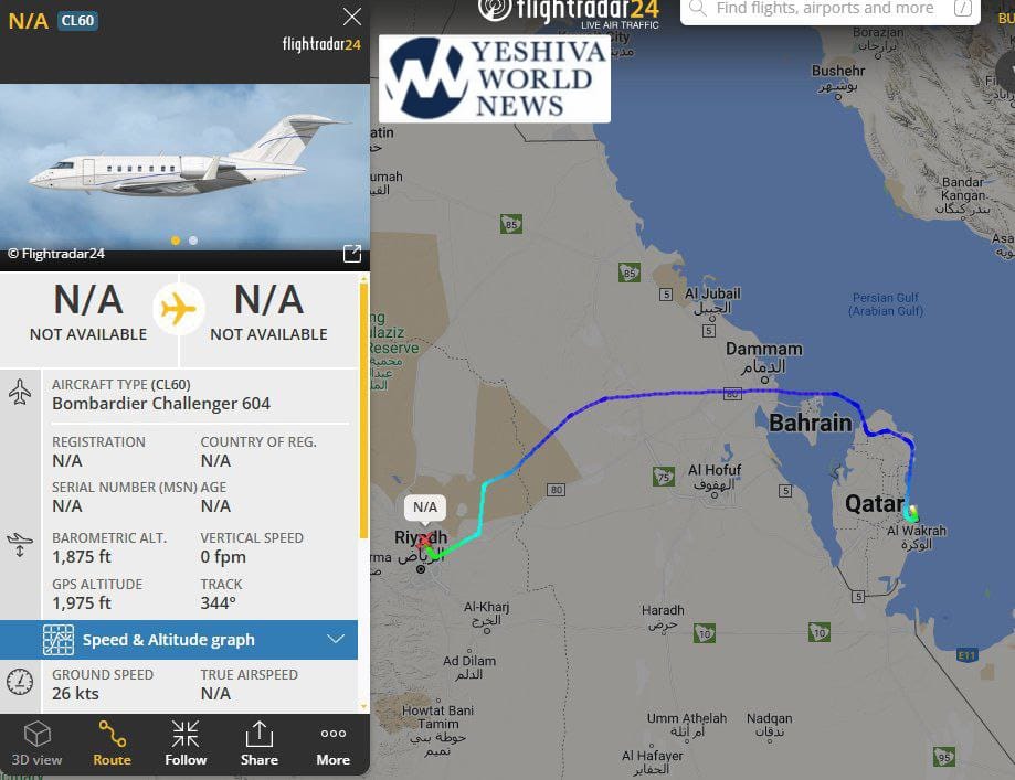 Israeli based private jet landed in Riyadh, Saudi Arabia, after 24 hours in Qatar (where it arrived from Seychelles after leaving Israel 5 days ago)