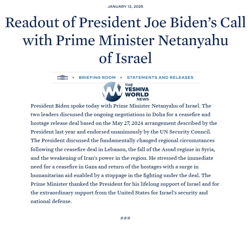 NEW: White House says Biden & Netanyahu spoke on “the ongoing negotiations in Doha for a ceasefire and hostage release deal.”