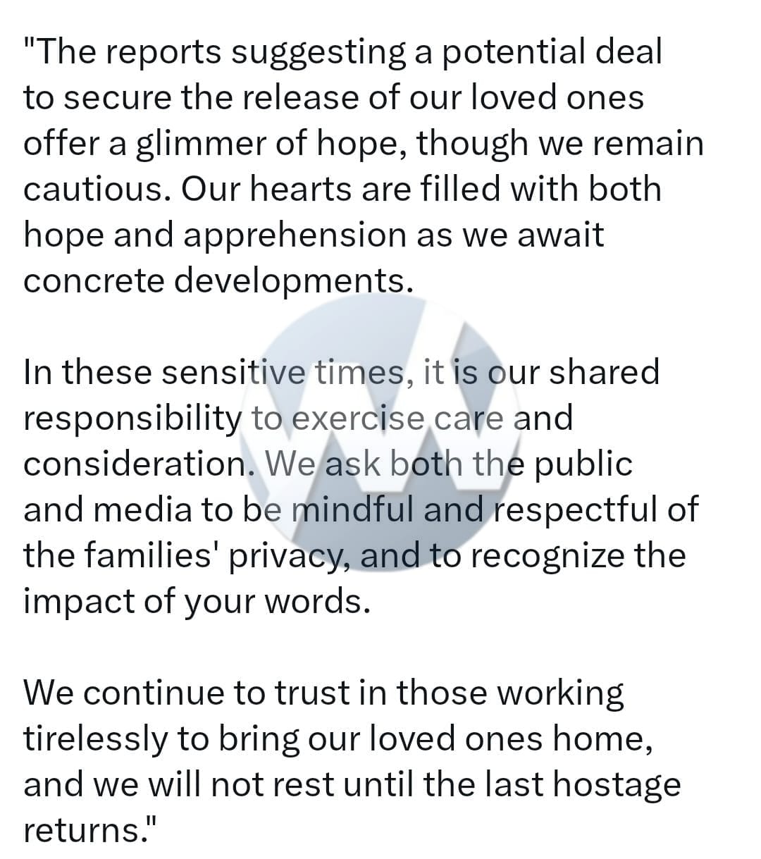 Statement on behalf of the Hostage Forum which represents many, but not all hostage families