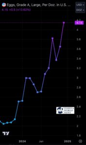 Egg prices have surged by 101% since October 2023, largely because of a widespread bird flu outbreak affecting poultry flocks throughout the US.