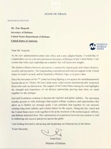 Defense Minister Katz told Secretary Hegseth that U.S.-Israel defense ties, based on shared values, are crucial, especially post-October 7th, with Israel facing a multi-front Iranian threat, showcasing the strength of their partnership.