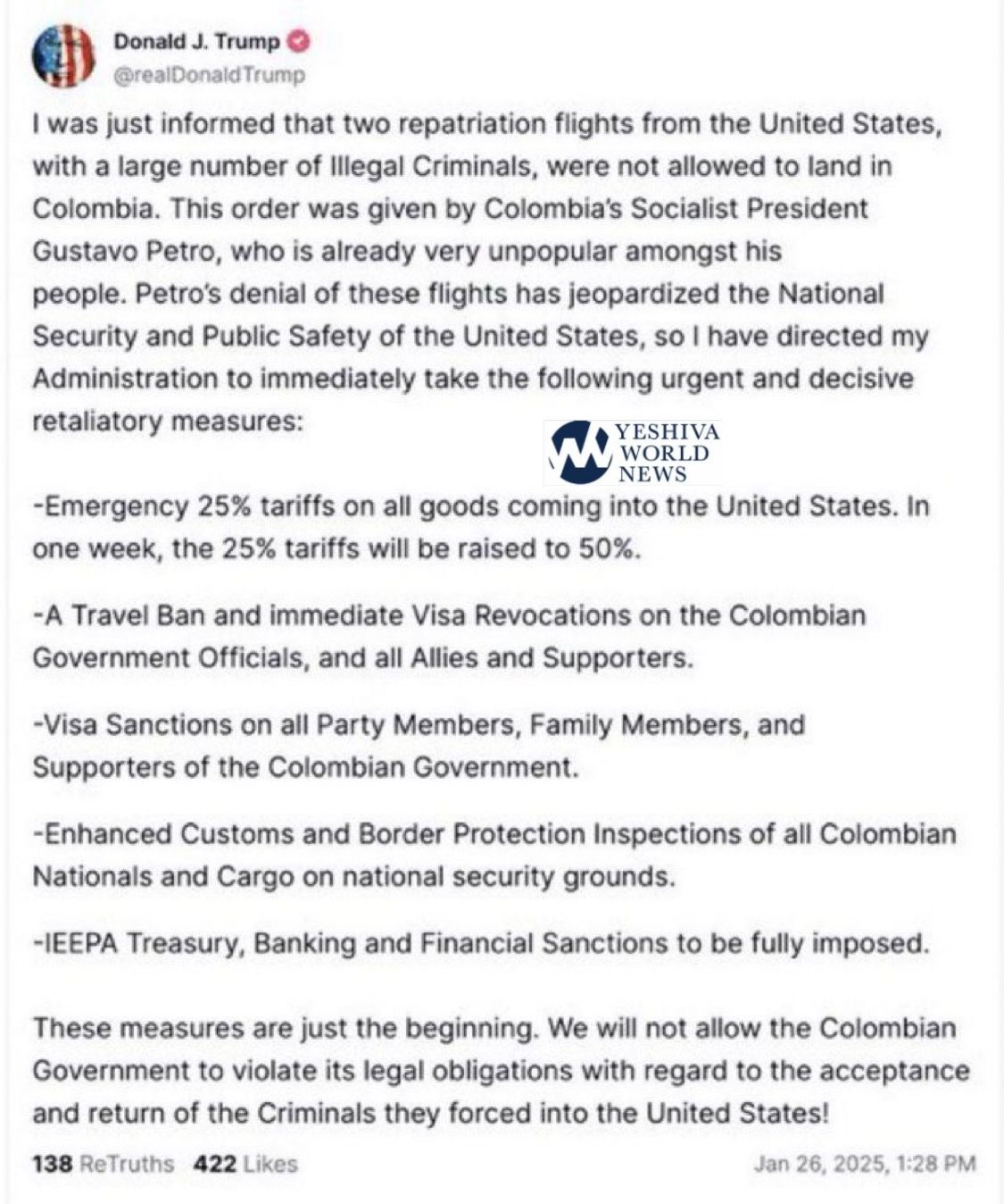 U.S. President Donald Trump has escalated actions against Colombia with measures including 25% tariffs, a travel ban, visa sanctions, intensified CBP inspections, and financial penalties.