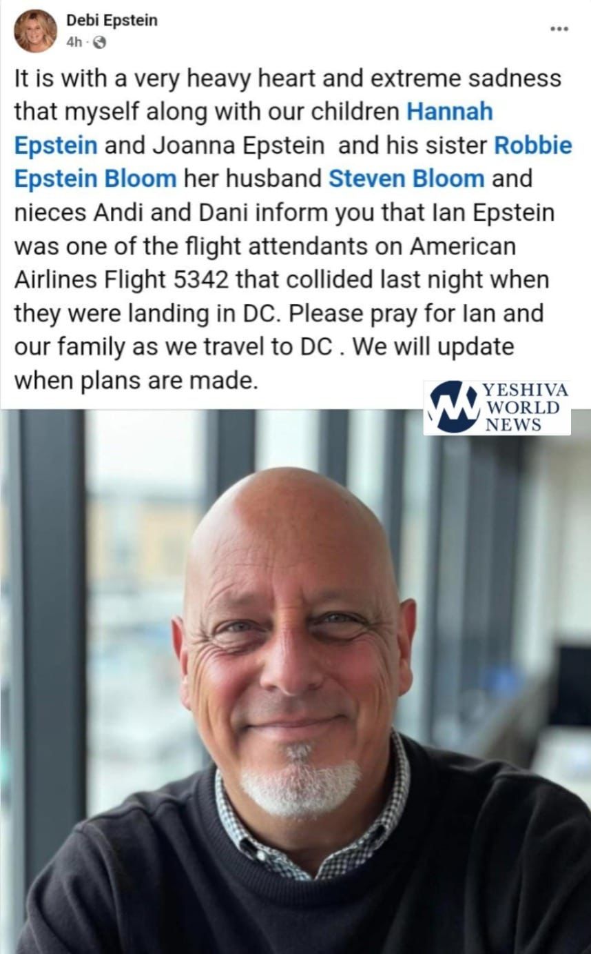 53-year-old Ian Epstein was a Jewish flight attendant who lost his life in the American Airlines flight that collided with an Army helicopter last night in D.C.