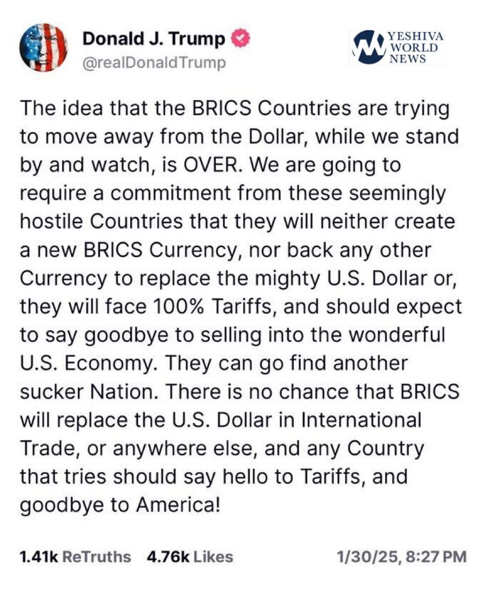 Trump is probably the best thing that happened to the idea of BRICS. Just days ago Trump threatened to cut Colombia out of the USD banking system with access to SWIFT because of a minor disagreement. You can be certain that every country in the world is worried this can happen to them. And those countries are worried about their dependency on the dollar and want an alternative.