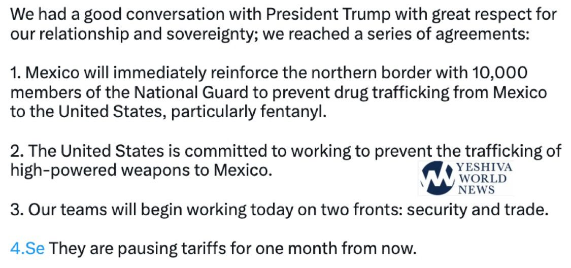 Mexico agrees to IMMEDIATELY send 10,000 troops to the border to prevent fentanyl from pouring across.