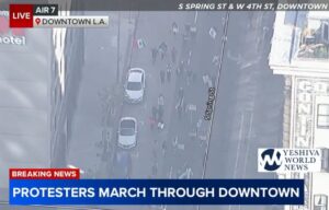 Protesters blocking streets in Downtown Los Angeles during ‘Day Without Immigrants’ march.