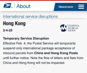 USPS Temporarily Halts Incoming Packages from China and Hong Kong Amid Tariffs