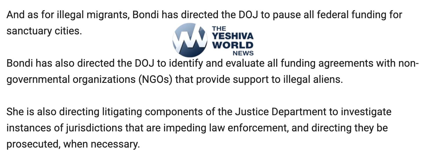 HER FIRST MOVE AS ATTORNEY GENERAL! Pam Bondi has just directed the Department of Justice to pause all federal funding for sanctuary cities.