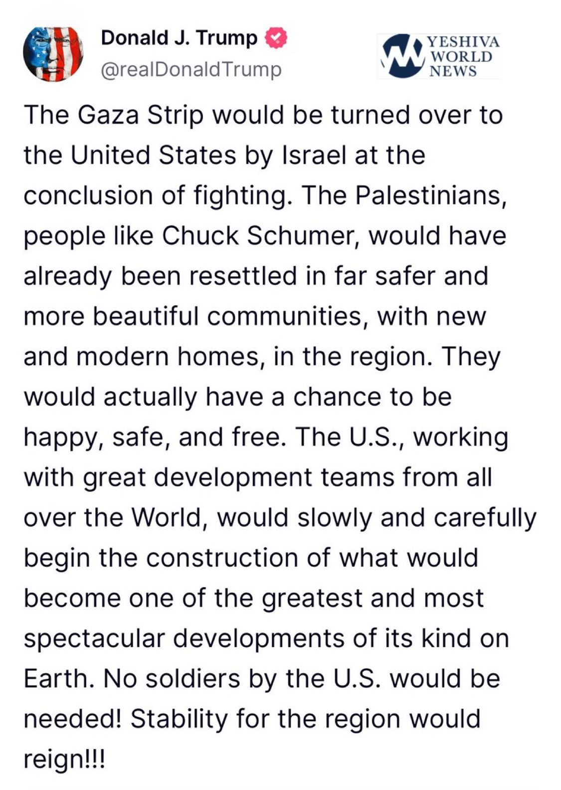 Trump doubles down and says Israel will hand Gaza over to the US at the end of the war.