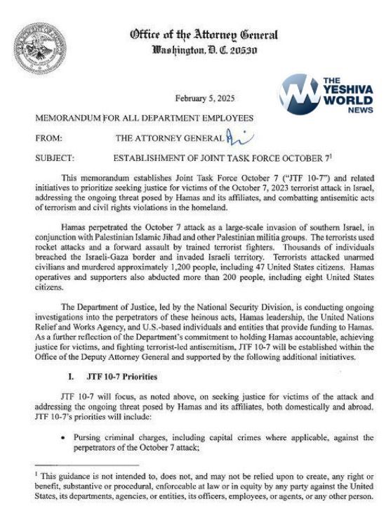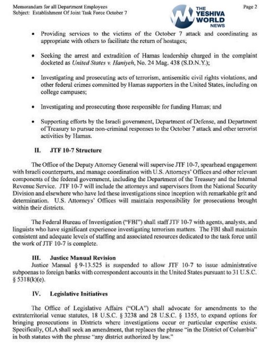 The United States is initiating an investigation into Hamas for events occurring on October 7, including those who funded Hamas.