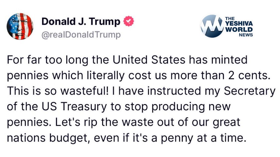 BREAKING: President Trump instructs the Secretary of the Treasury to stop production of the penny