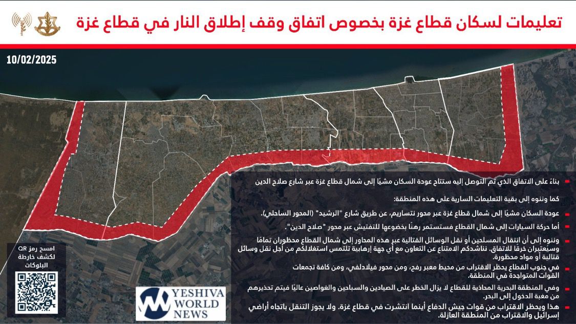 Following the IDF’s withdrawal from the Netzarim Corridor in central Gaza yesterday, they have once again issued warnings to Palestinians, advising them not to approach military personnel or enter restricted zones.