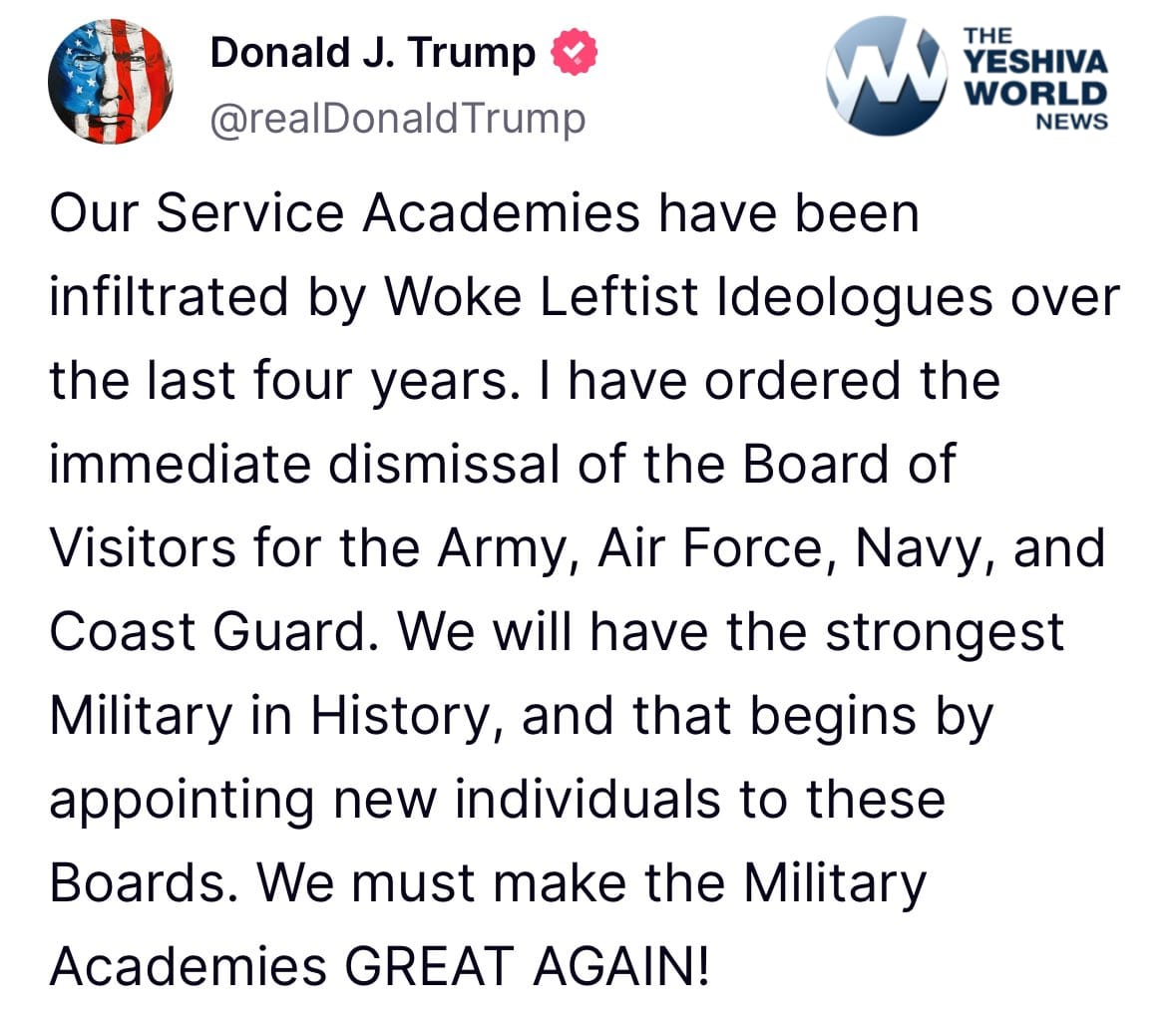 Trump just fired the Board of Visitors for the Army, Air Force, Navy, and the Coast Guard.