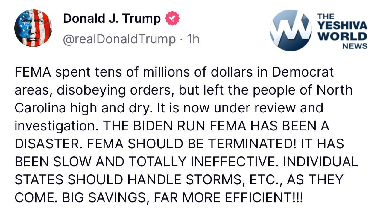 Trump says FEMA has been a “DISASTER”, and says it SHOULD BE TERMINATED!
