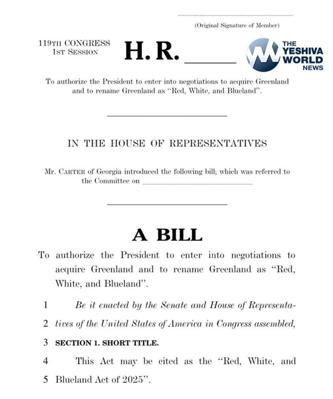 Georgia Rep. Buddy Carter proposes legislation to change Greenland’s name to “Red, White, and Blueland.”