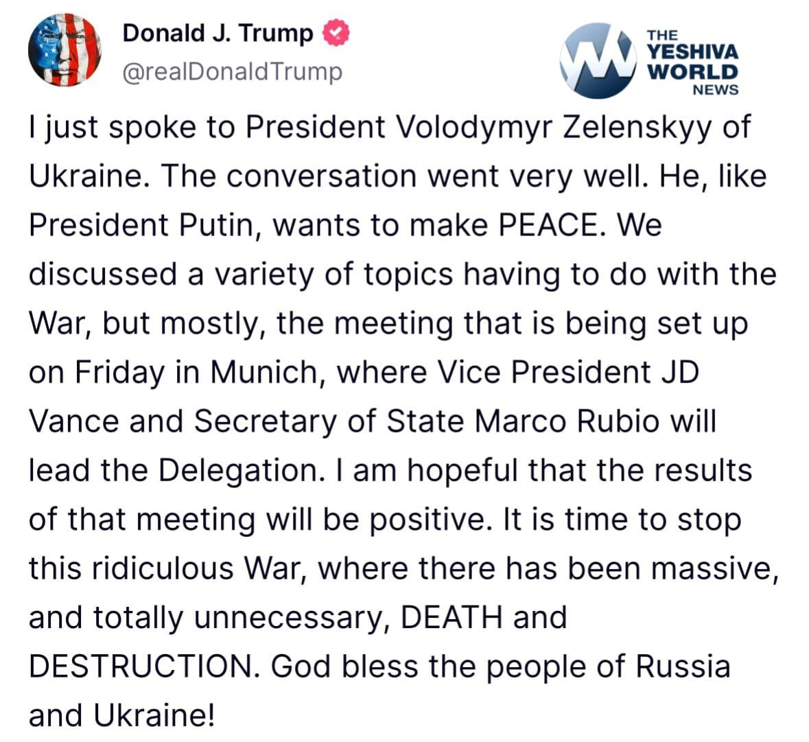 BREAKING: Trump spoke with Zelenskyy about ending the war with Russia.