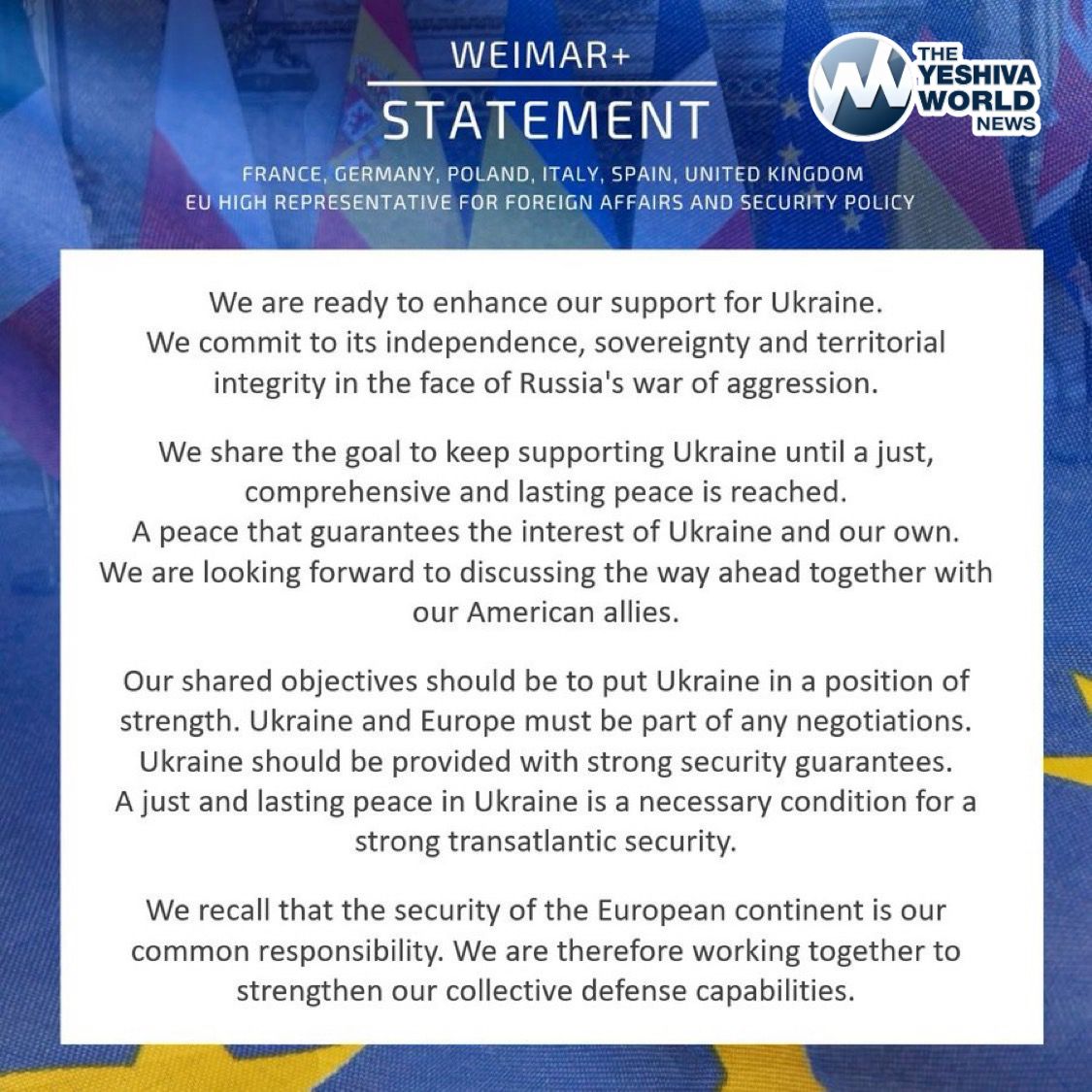 The UK has signed a statement with EU allies telling Donald Trump that Europe must be part of the negotiations to end the Ukraine war.