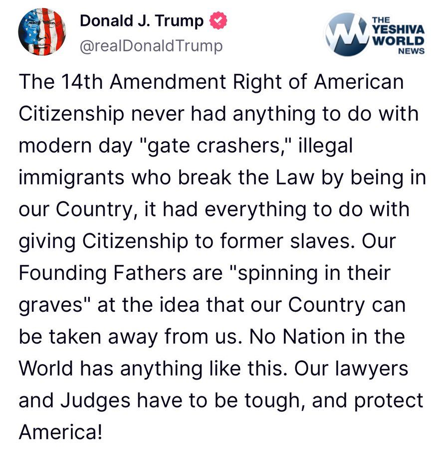 Trump says the 14th Amendment does NOT guarantee citizenship for illegal aliens