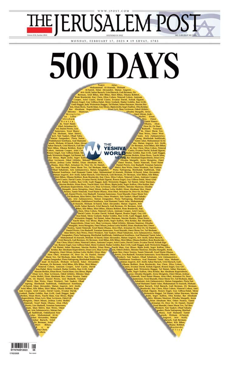 The cover of Monday’s Jerusalem Post. 73 hostages have spent 500 days suffering in Gaza 🎗