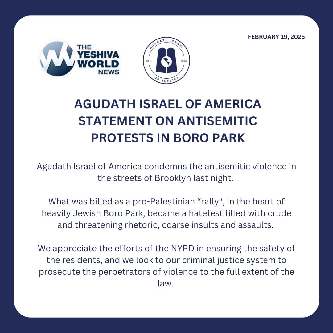 The Agudah has released a statement on the protests last night in Boro Park