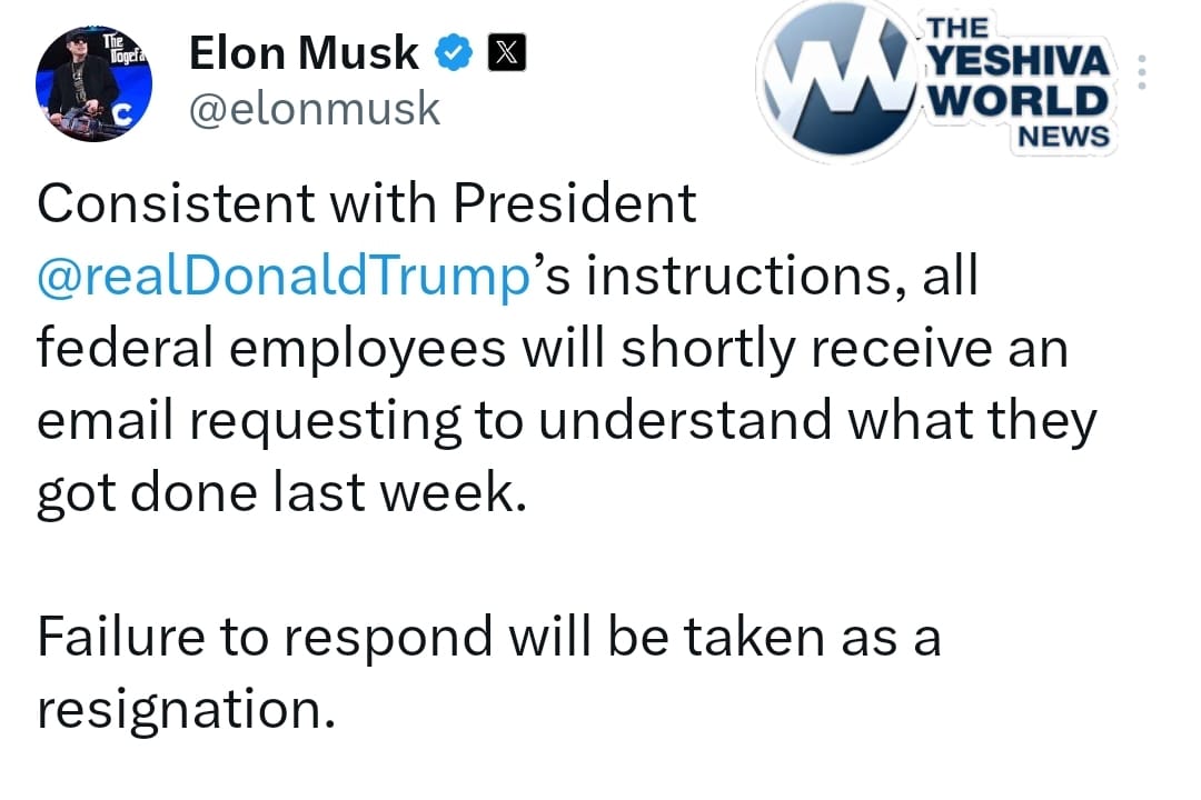 Musk posted on X that employees will be receiving an email “shortly” requesting to “understand what they got done last week.” A lack of response, Musk said, “will be taken as a resignation.”