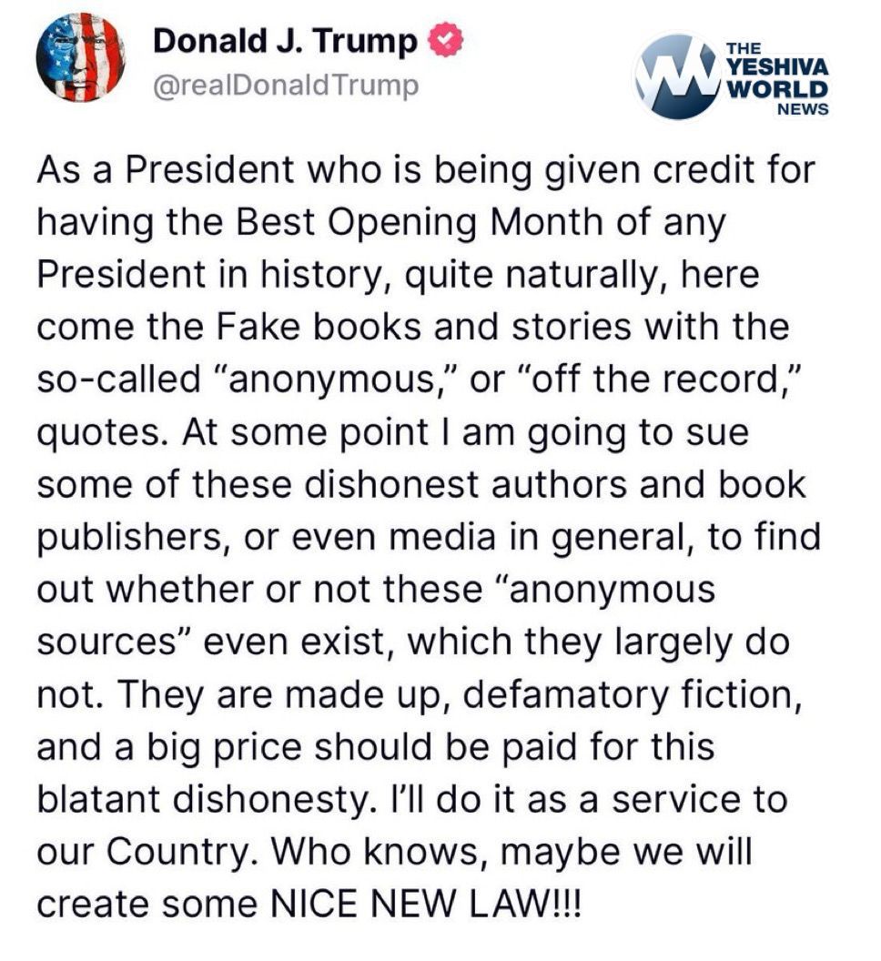 PRESIDENT TRUMP: “I am going to sue some of these dishonest authors.”