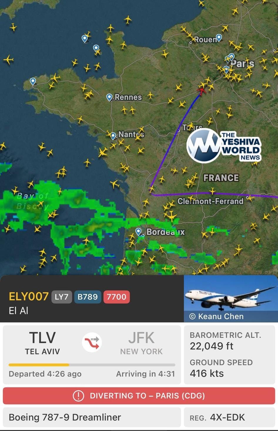 🚨 An El Al flight heading from Tel Aviv to JFK is diverting to Paris. Cause not yet known.