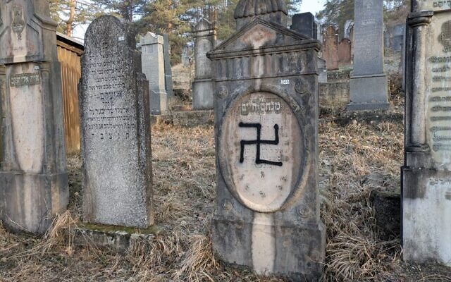 Swastikas were discovered on two headstones at a cemetery in Humenne, Slovakia, a town whose Jewish population was nearly wiped out during the Holocaust. In March 1942, Jewish women and girls from Humenne were among the first deported to Auschwitz, with the rest expelled and sent to camps over time. Just a handful survived.