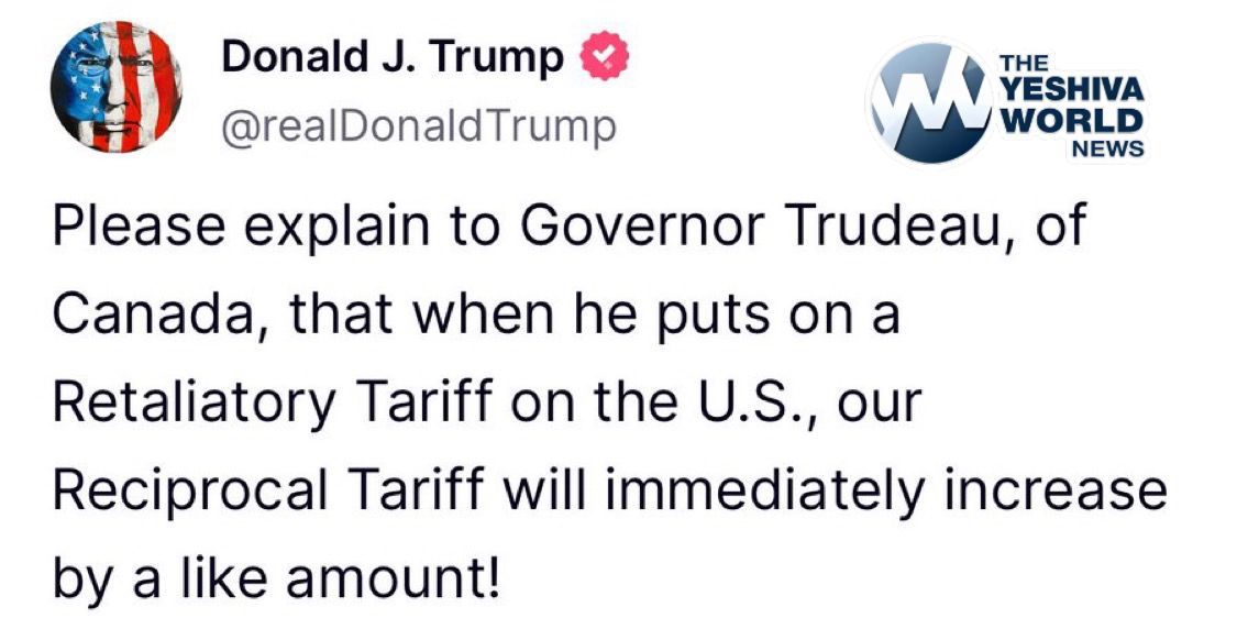 President Trump responds to “Governor Trudeau regarding tariffs.