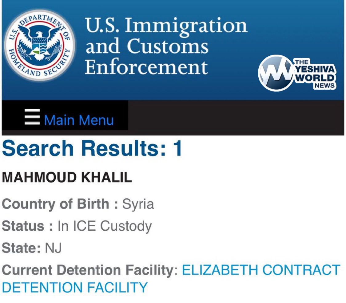 BREAKING: ICE has taken Mahmoud Khalil into custody, a recent Columbia University graduate known for his anti-Israel stance. Khalil is said to have participated in the occupation of a Barnard College building last week and reportedly played a leading role in an encampment at Columbia the previous year, which caused weeks of disruption on campus.