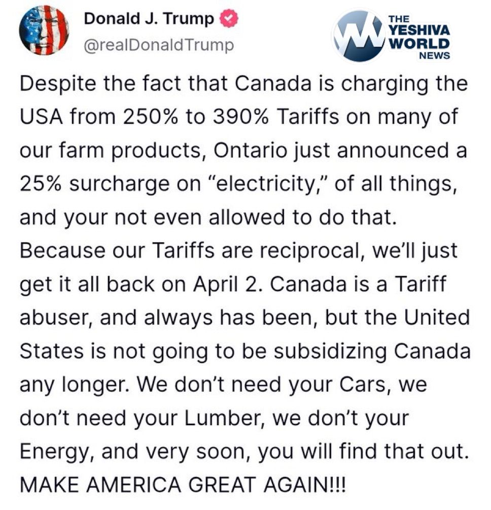 President Trump responds to Ontario Premier Doug Ford: “We don’t need your energy.”
