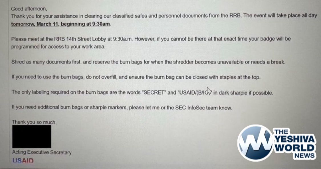USAID staff ordered to clear out classified safes and personnel documents. “Shred as many documents first, and reserve the burn bags for when the shredder becomes unavailable or needs a break,”