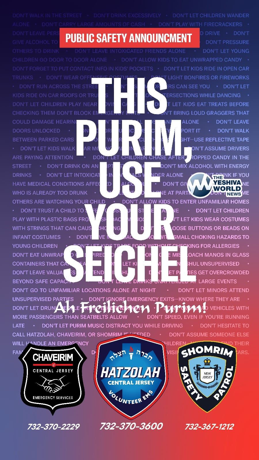 Purim Safety Message From Lakewood Hatzolah, Chaveirim And Shomrim