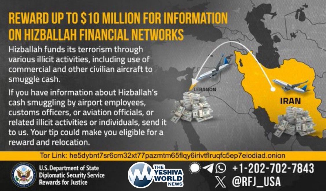 The U.S. State Department has announced a $10 million reward for details regarding Iran’s financial smuggling operations supporting Hezbollah via Beirut International Airport.