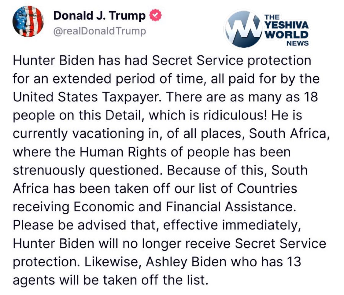 President Trump announces Hunter Biden and Ashley Biden will no longer receive Secret Service protection.