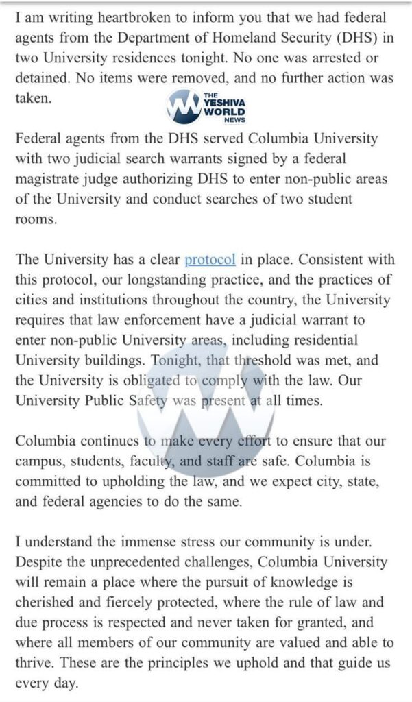 TEARS FOR TERRORISTS: Columbia University tells students it is “heartbroken” that DHS raided university residences as the Trump administration cracks down on terror supporters ginning up chaos and antisemitism on American college campuses.