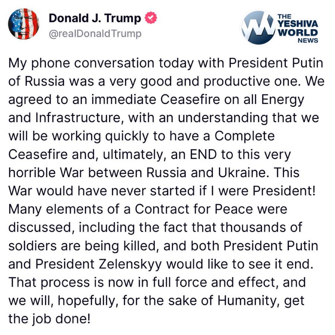 Statement From President Trump Regarding His Phone Call With Vladimir Putin Today