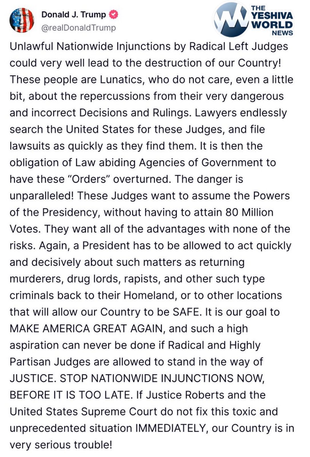 President Trump Releases Statement Regarding ‘Radical Left Judges’