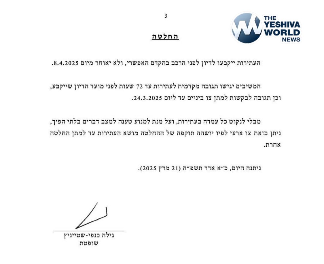 The Israeli Supreme Court has ordered a halt to Prime Minister Benjamin Netanyahu’s dismissal of Shin Bet Director Ronen Bar, until an official hearing can be had by the High Court.