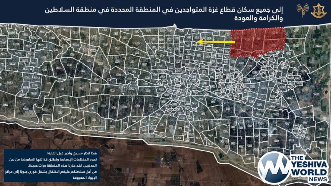 Following the rocket attack on Ashkelon, the IDF declared an evacuation of the Salatin region in the northern Gaza Strip, which has been identified as the launch site.