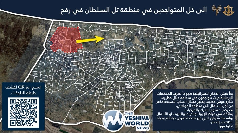 The IDF has issued an “urgent” and immediate evacuation warning for Palestinians residing in the Tel Sultan neighborhood of southern Gaza’s Rafah.
