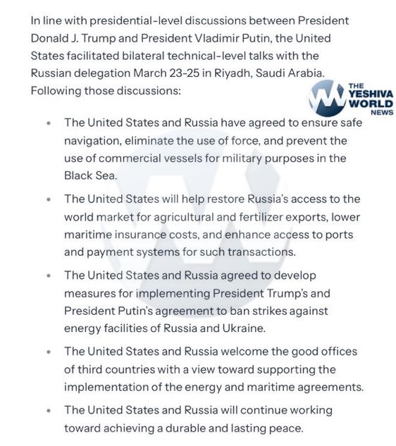 WHITE HOUSE: Russia, Ukraine Agree To Black Sea Ceasefire