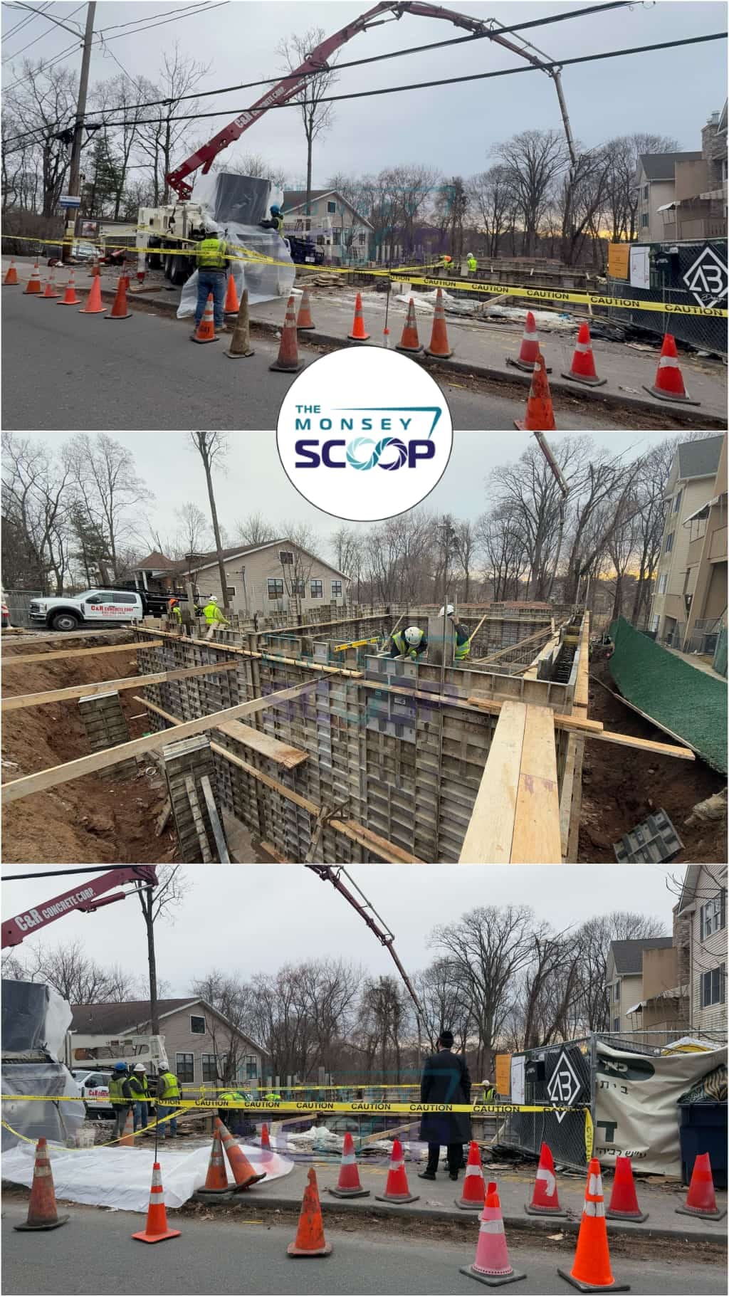 On Wednesday, construction continued at the site of the newly built Breslover Beis HaMedrash on Main Street, where the original Shul was completely demolished and is now being rebuilt from the ground up. Workers poured concrete for the first floor’s exterior walls, along with the initial layer of walls for the Mikvah.