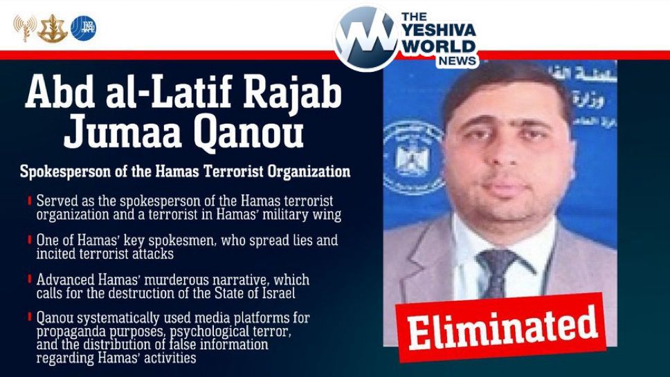 ELIMINATED: Abd al-Latif Rajab Jumaa Qanou, a long-serving key spokesman for Hamas, has been eliminated after years of spreading lies, inciting terrorism, and systematically using media platforms to propagate psychological terror and false information.