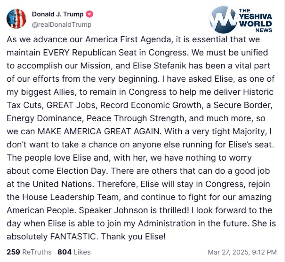 BREAKING: Trump Pulls Rep. Elise Stefanik’s Nomination To Be U.N. Ambassador
