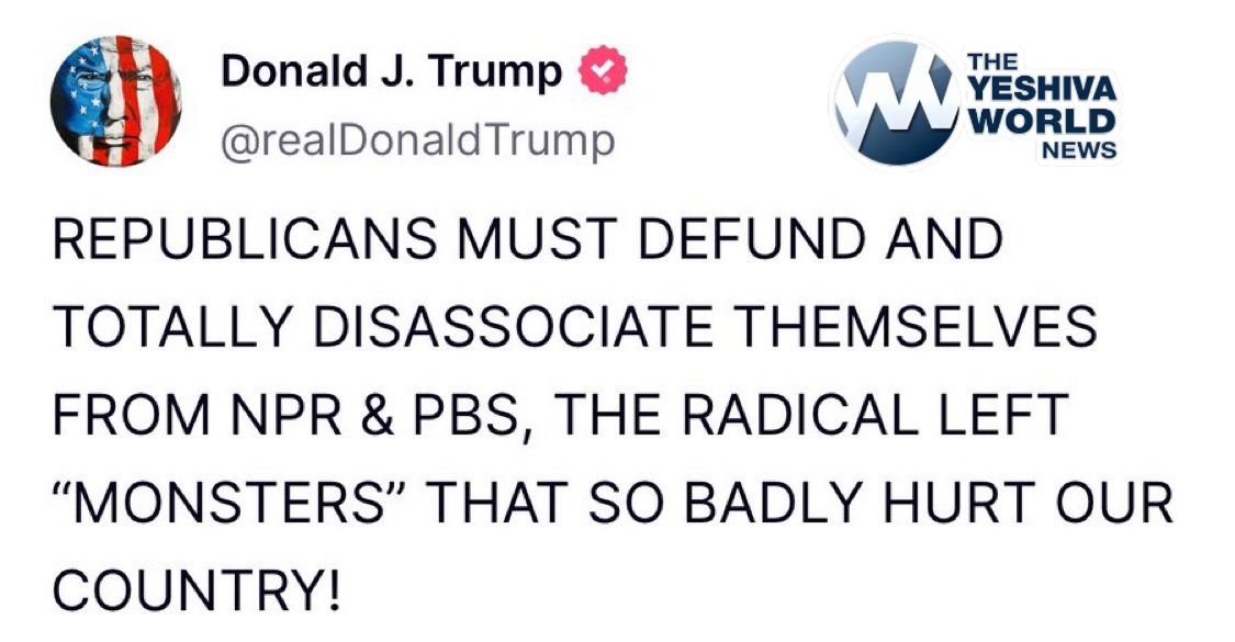 President Trump calls for PBS and NPR to be defunded, labeling them “monsters.”