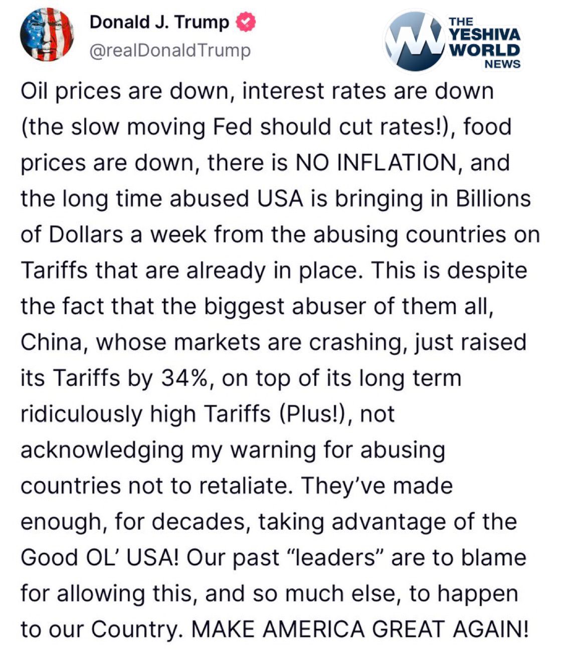 Only hours before markets open in the United States, U.S. President Trump calls for the “slow moving Fed” to cut interest rates, while adding that “there is no inflation”