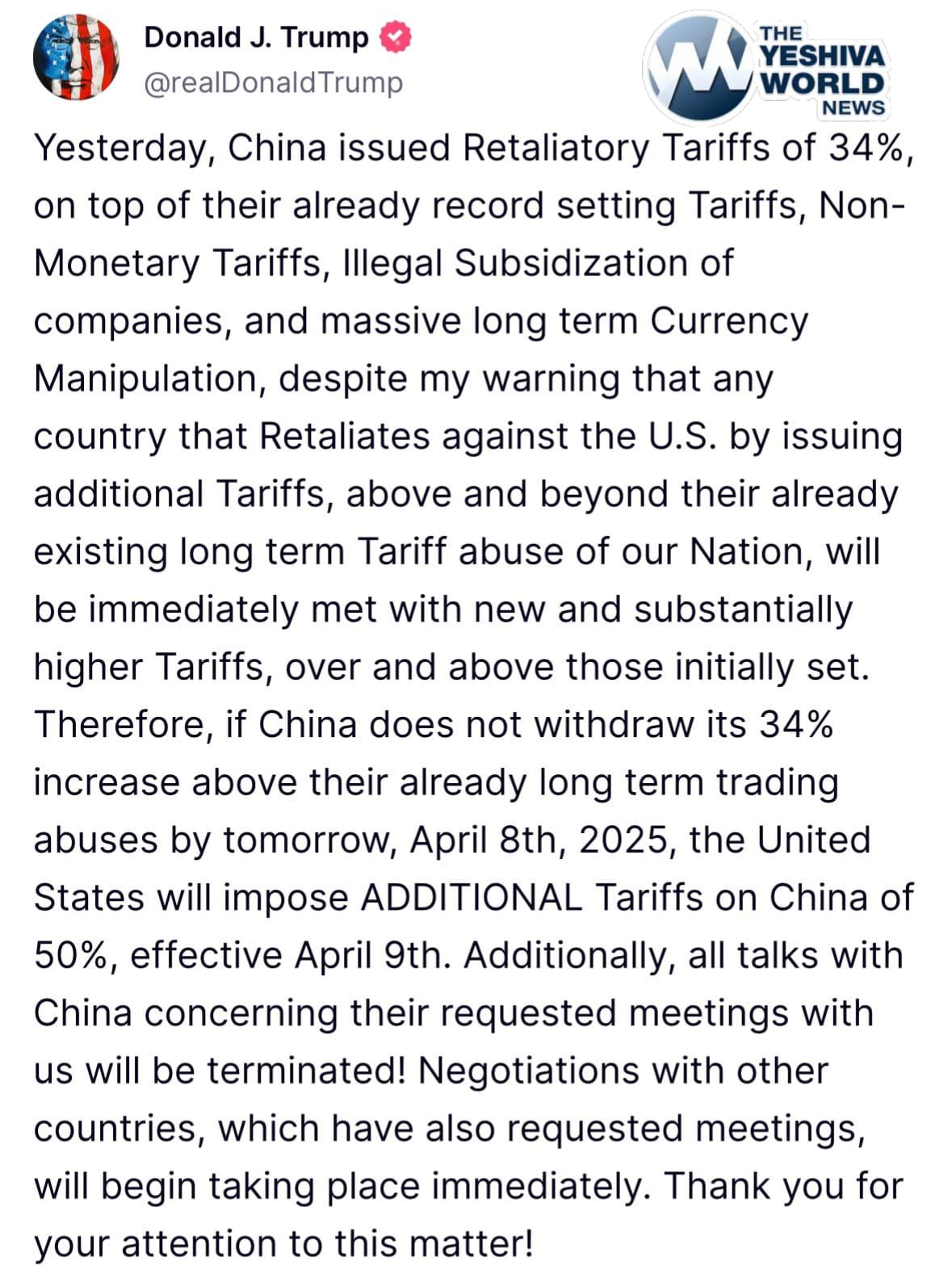 BREAKING: Trump threatens to RAISE the tariffs on China by an additional 50%