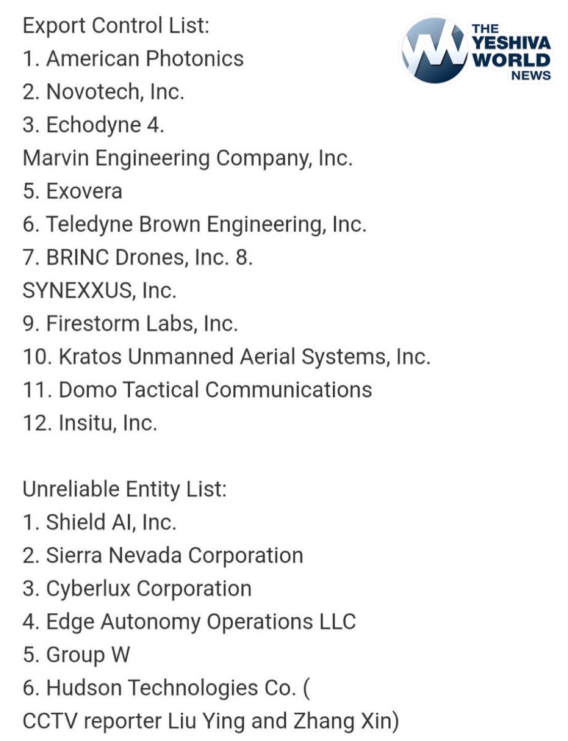 China Adds 12 U.S. Tech Firms to Export Control List, Labels 6 as “Unreliable”