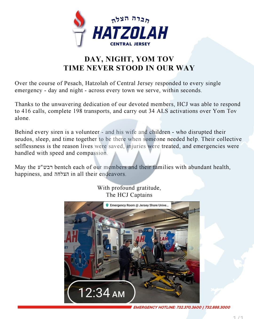 Hatzolah of Central Jersey Releases Outstanding Call Totals For Yom Tov